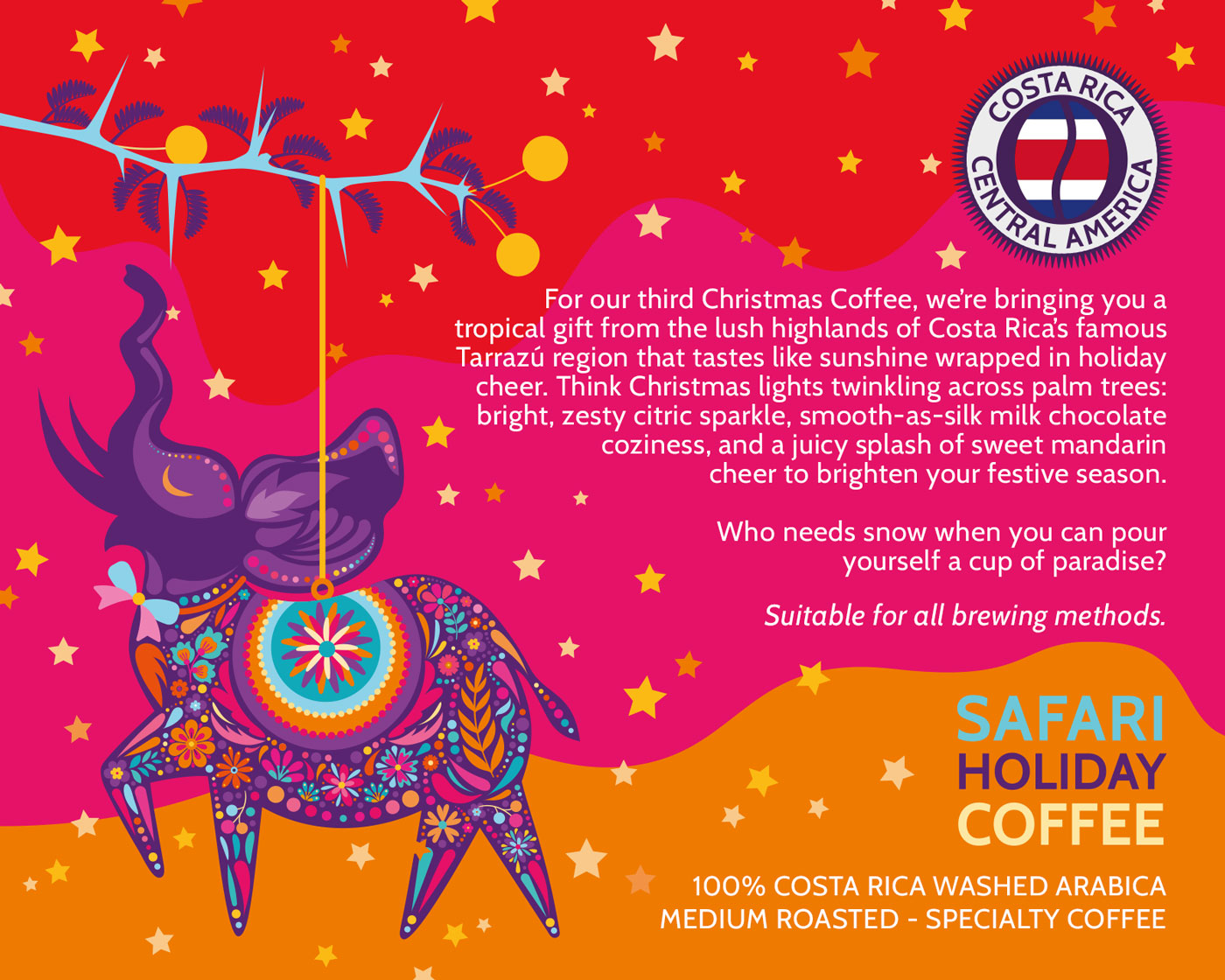 For our third Christmas Coffee, we’re unwrapping a tropical gift from the lush highlands of Costa Rica’s famous Tarrazú region that tastes like sunshine wrapped in holiday cheer. Think Christmas lights twinkling across palm trees: bright zesty citric sparkle, smooth-as-silk milk chocolate coziness, and a juicy splash of sweet mandarin cheer to brighten your festive season.